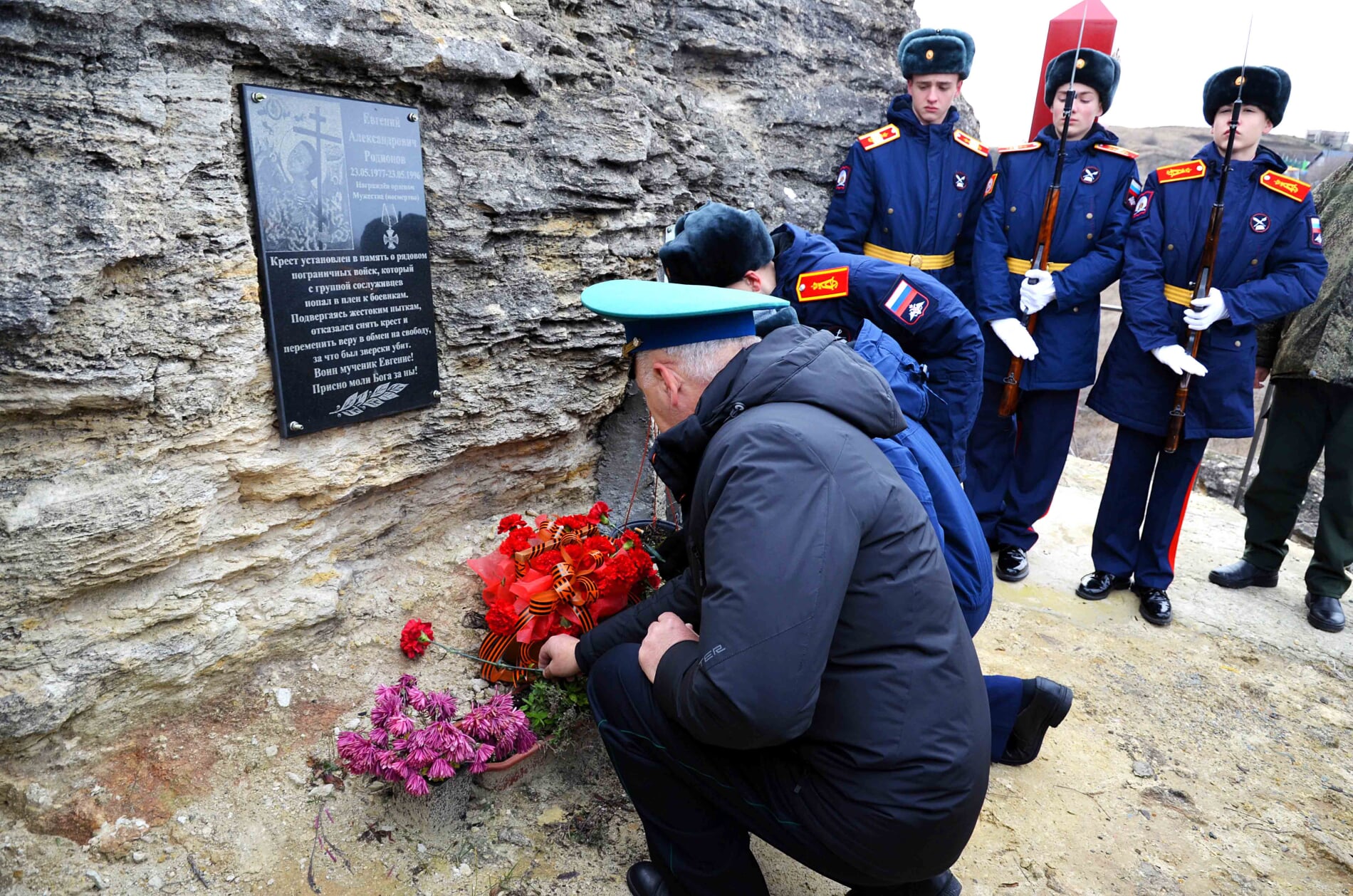 Участники события - ветераны пограничной службы краевого Совета во главе с председателем Виктором Лозовым и кадеты казачьего корпуса с их воспитателем Андреем Мироненко посетили памятное место в окрестностях Ставрополя, у озера Кравцово, где в скале установлен мемориал в честь Евгения Родионова – пограничника, героически погибшего у чеченского села Бамут в ходе первой чеченской войны.