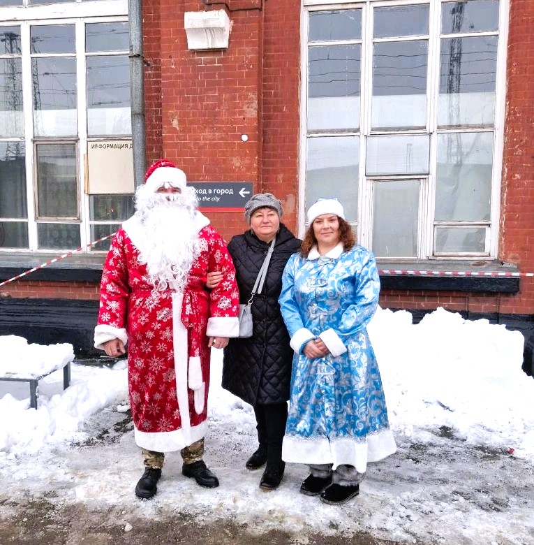 Привезённые к приходу поезда большие коробки и корзины с новогодними подарками были разложены прямо на перроне, а затем в сопровождении Деда Мороза и Снегурочки разнесены раненым бойцам в вагонах. Солдаты от всей души благодарили ветеранов за доброту и внимание.